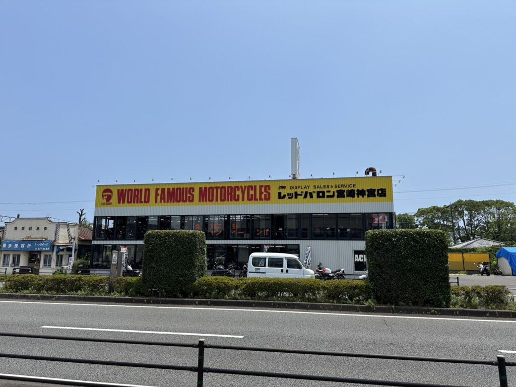 店舗の正面には「バイクのレッドバロン」があります。黄色い看板で目立つので分かりやすいです。