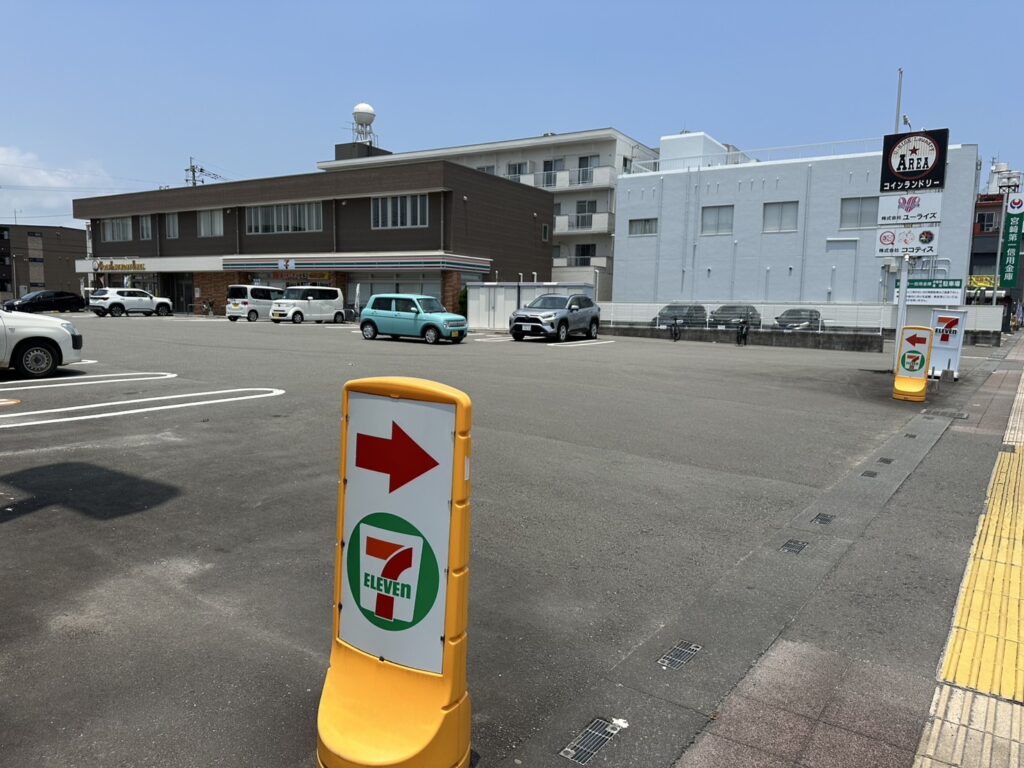 お隣には「セブン-イレブン宮崎神宮東3丁目店」があります。視認性も高く店舗へのアクセスに迷う必要もありません。